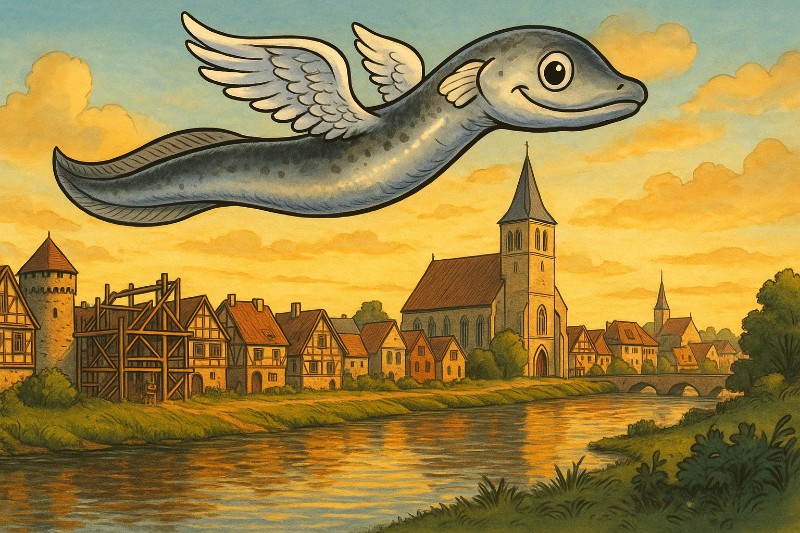 Und dann schleicht sich ein Symbol in die Kulisse, so schrullig wie genial: ein geflügelter Aal. Ob er vom Stadtgründer gezähmt wurde, ob er nur mal kurz Luft holen wollte – keiner weiß es. Sicher ist: Dieser Aal ist das perfekte Bild für jene Mischung, die Ahlen von Anfang an kultiviert: bodenständig wie eine Eichenbank, beweglich wie ein Marktkarren, und wenn’s sein muss, sogar luftig. Der Aal wird zum Wappentier und damit zum ersten lokalen Influencer: kein Lautsprecher, eher ein Zwinkern im Stadtwappen – aber eines, das hängen bleibt.