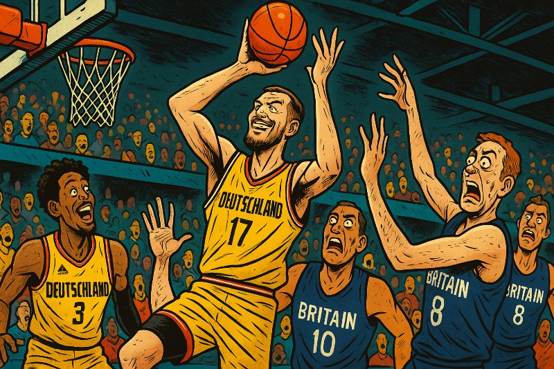 Die Briten dagegen werden diese EM wohl verlassen wie ein Tourist nach einer missglückten Sprachreise: „War nett, aber wir haben nichts verstanden.“ Vielleicht nehmen sie als Souvenir den deutschen Offensivplan mit – oder zumindest die Telefonnummer eines guten Basketballtrainers.