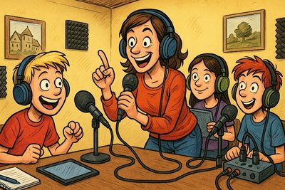 Während die meisten Ferienprojekte bisher in Richtung Basteln, Töpfern oder „Wie falte ich einen Vogel aus Pappe?“ gingen, gibt es diesmal die digitale Premiumversion: Podcasts wie die Großen – nur ohne Spotify-Vertrag.